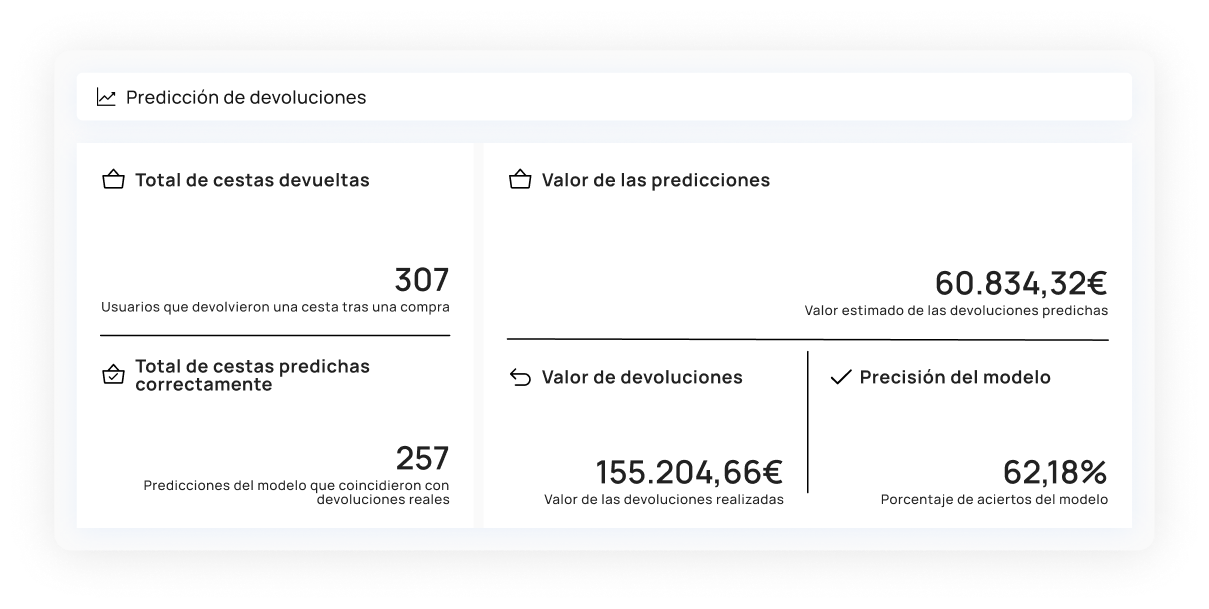 Waibo te ayuda a empezar a ver de otra manera el churn o las devoluciones, los dos principales enemigos de todo negocio digital. Trabajamos con IA predictiva y datos de contexto que permiten anticiparse, identificando pedidos con alta propensión a ser devueltos o actuando sobre clientes al final de su ciclo de vida antes de que te abandonen.
